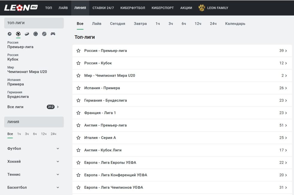 Главное преимущество БК Леон — широкая линия ставок.