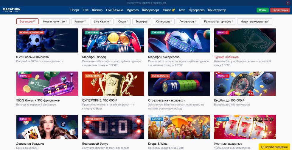 Важно внимательно читать правила каждой акции, так как БК Марафон оставляет за собой право изменять условия или исключать отдельных игроков из участия в бонусных программах при подозрении в злоупотреблениях.