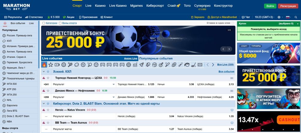 Букмекерская контора Марафон предлагает игрокам разнообразные бонусные программы и регулярные акции. Система промокодов и фрибетов позволяет получать дополнительную выгоду от ставок на спорт.