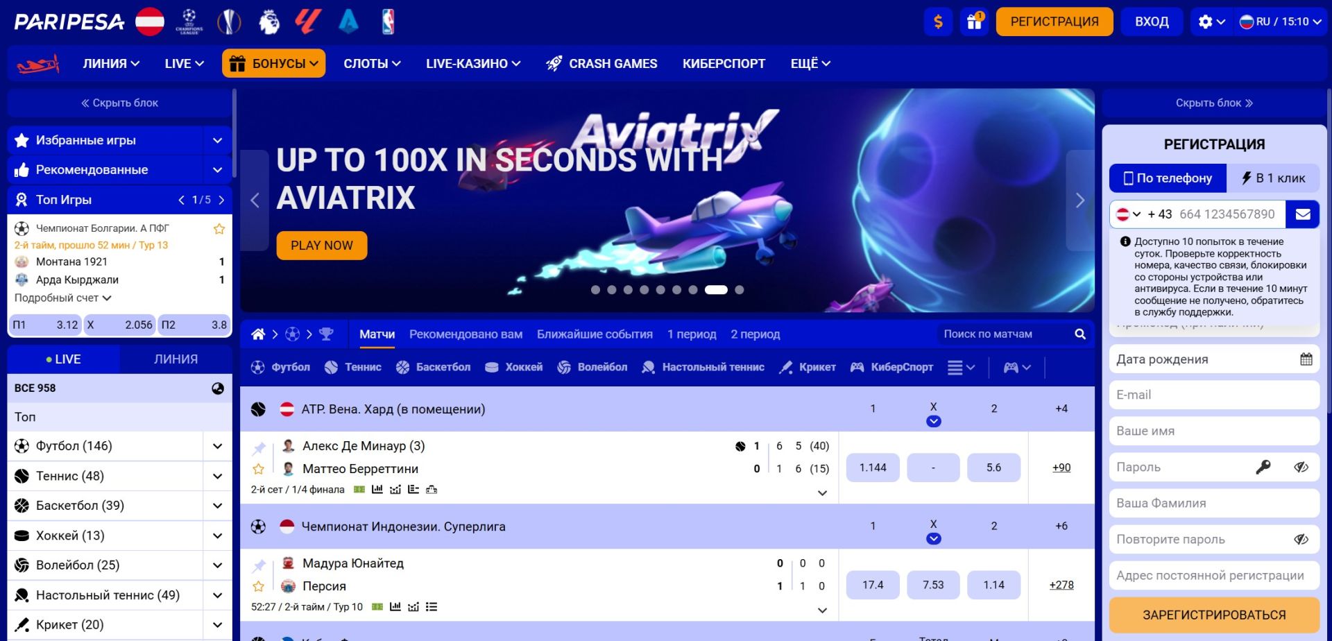 Сайт Paripesa.com ориентирован на международный рынок, но доступен и пользователям из России через актуальное зеркало Paripesa.