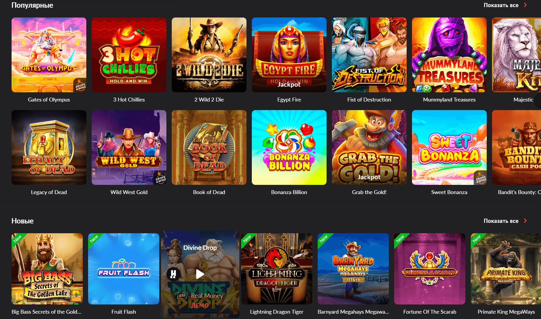 Продуманный интерфейс: Оператор внедрил проверенные решения, создав удобный и интуитивно понятный интерфейс. Пользователи могут легко переключаться между различными разделами, такими как автоматы, бонусы, ставки на спорт и лайв-трансляции.