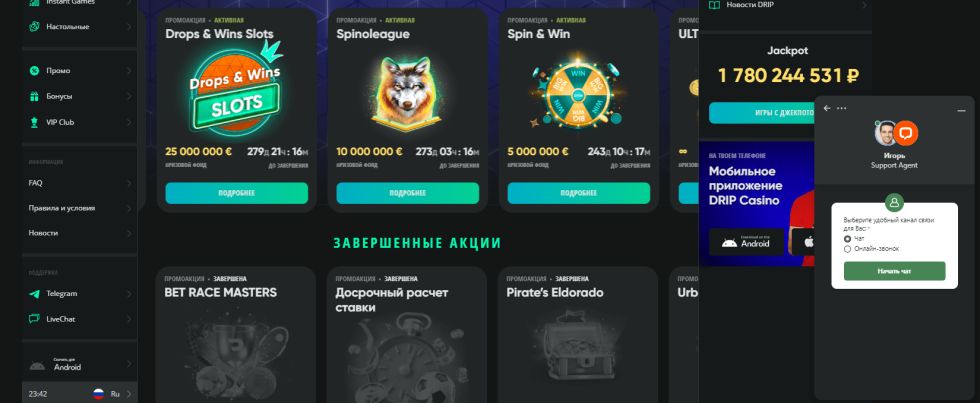 - Телефон, если вам удобнее общаться по телефону, вы можете позвонить на горячую линию Drip Casino. Номер телефона можно найти на сайте в разделе "Контакты".