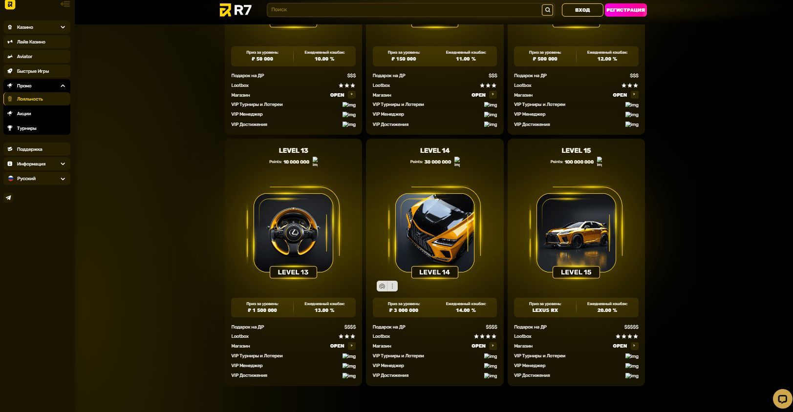 Кроме того, достигнув наивысшего уровня программы лояльности, вы получите возможность выиграть Lexus RX. Согласитесь, это мотивирует играть снова и снова.