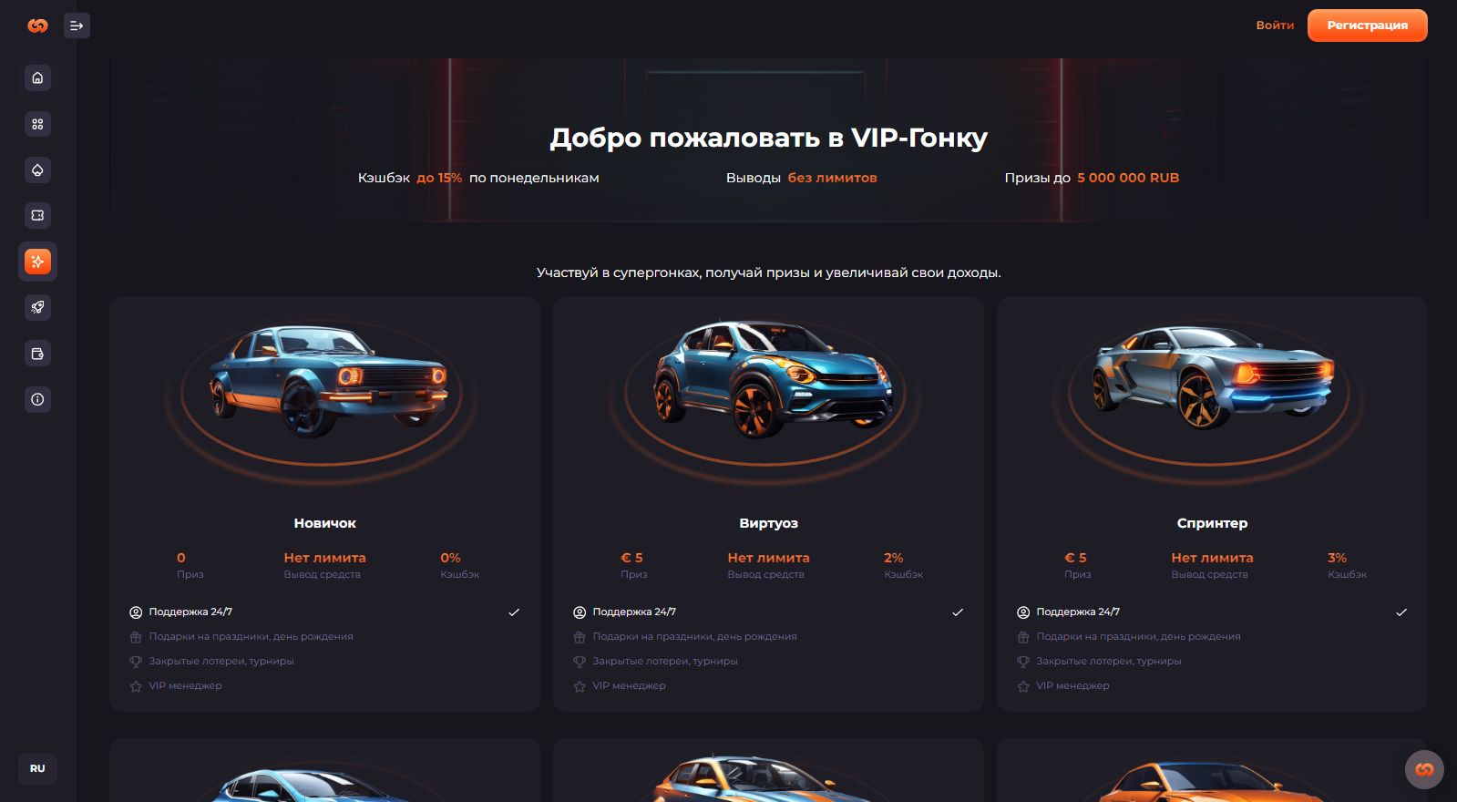 Лестница из 15 уровней для лояльных клиентов предусматривает еженедельный кэшбек, рейкбек (возврат со всего оборота ставок), обменные очки, которые зарабатываются за ставки и которые можно выменять на реальные деньги.