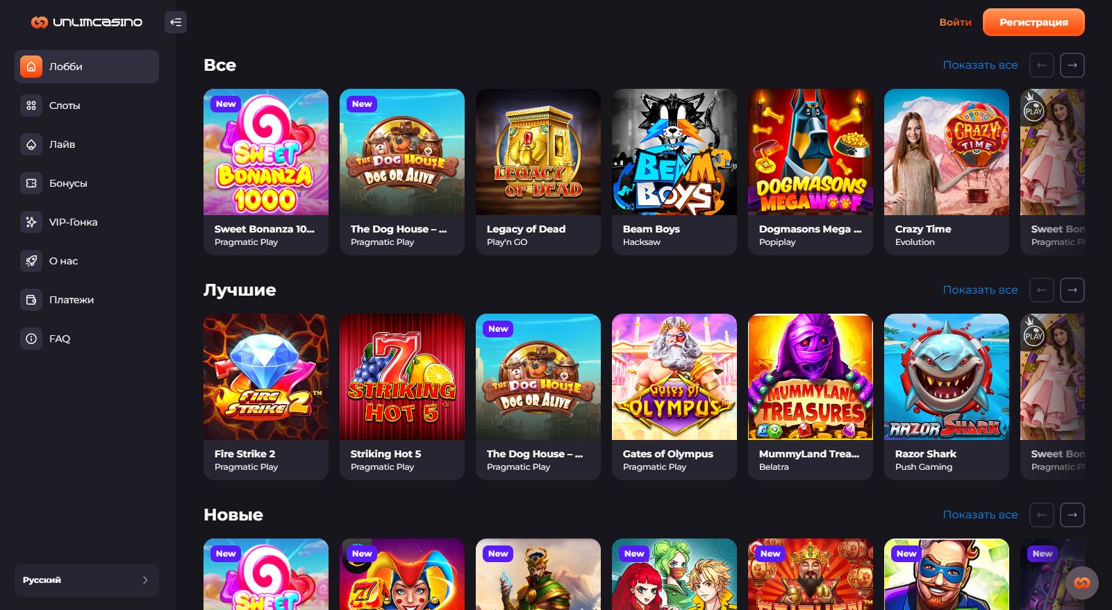 С релиза платформы в 2023 году, Unlim Casino уже зарекомендовала себя как стабильный проект для игры на деньги. Главной особенностью казино преподносится политика безлимитных выплат. Отсюда растут ноги и у названия казино (Unlim с англ. «Безлимитный»).